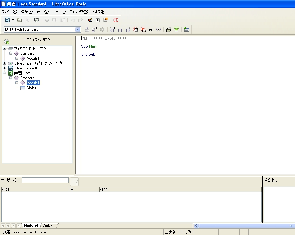 Module1 LibreOffice Basicの画面に変わりました。